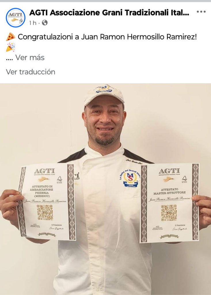Está certificado como Maestro Instructor y Embajador del molino y la AGTI en México, gracias a su formación en la Academia del Grano por la Associazione Grani Tradizionali Italiani, una organización dedicada a proteger el "Made in Italy" y a fomentar la internacionalización del sector